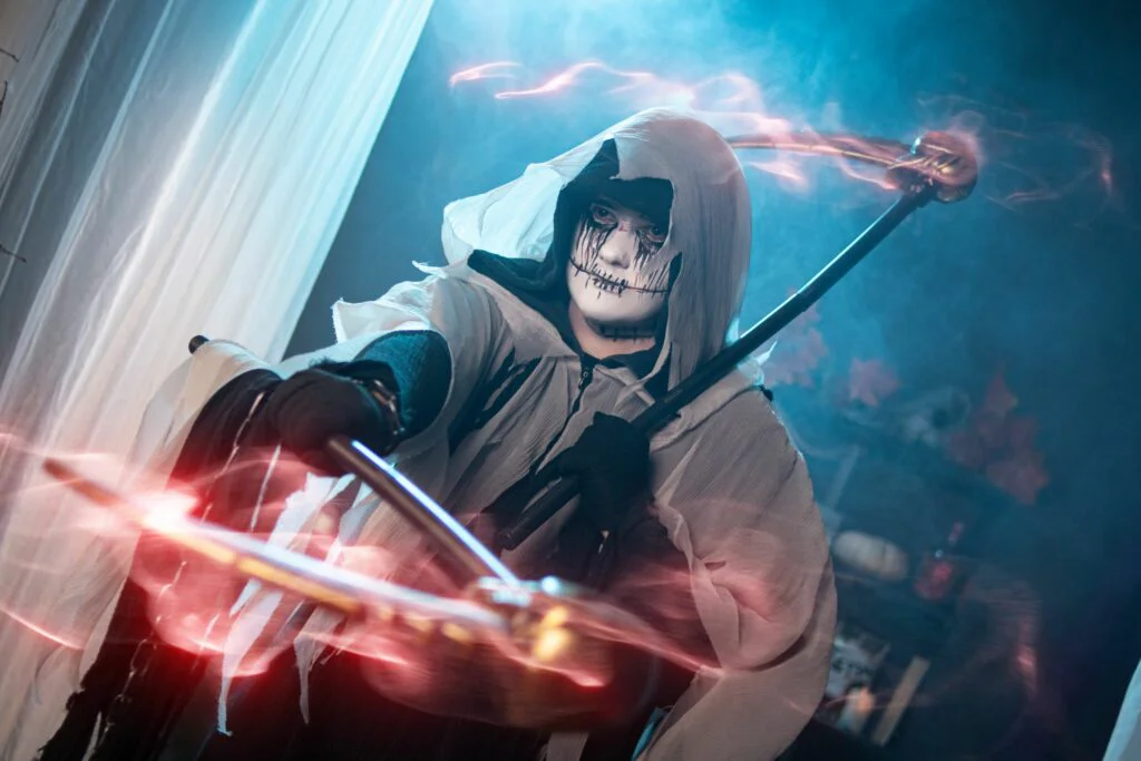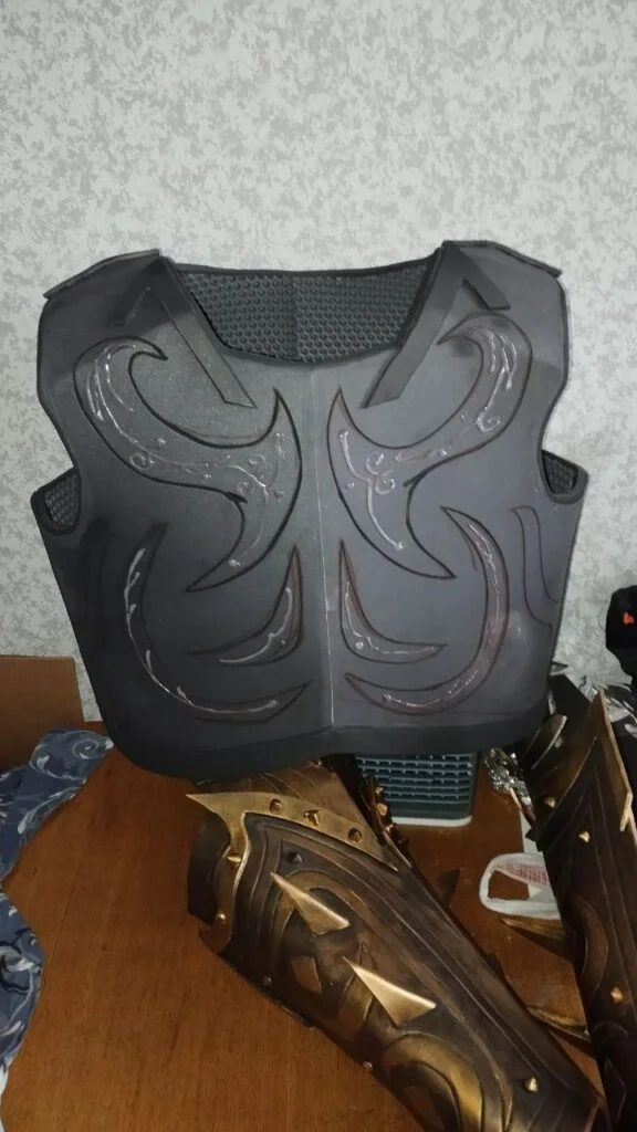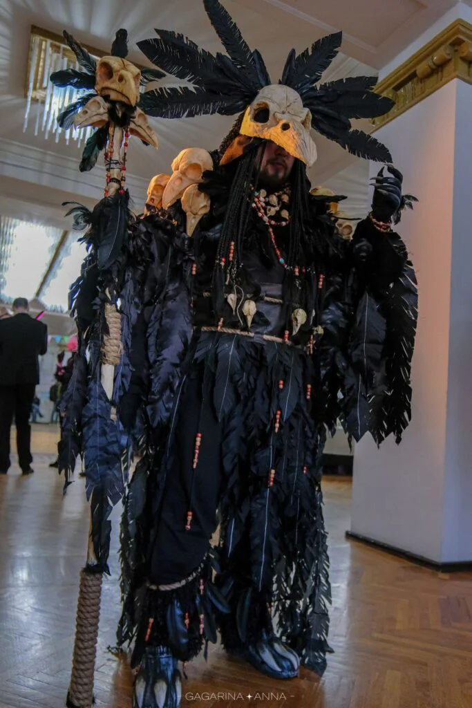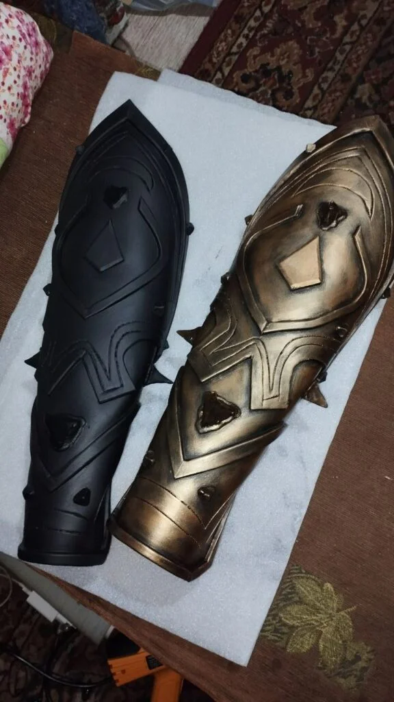 Одна из самых необычных сторон творчества V.ART — ручное изготовление реквизита. Это не покупные костюмы из интернет-магазина и не AI-генерация. Это пенополиуретан, термопластик, клей, краска, десятки часов работы руками. Молот для образа на фестивале Мацури. Гибкие крылья Феникса по заказу модели. Полный доспех друида, в котором Валера сам выходил на косплей-фестивали. Маски призраков для одноимённого проекта. Декоративная шкатулка для проекта «Аколит Тьмы».