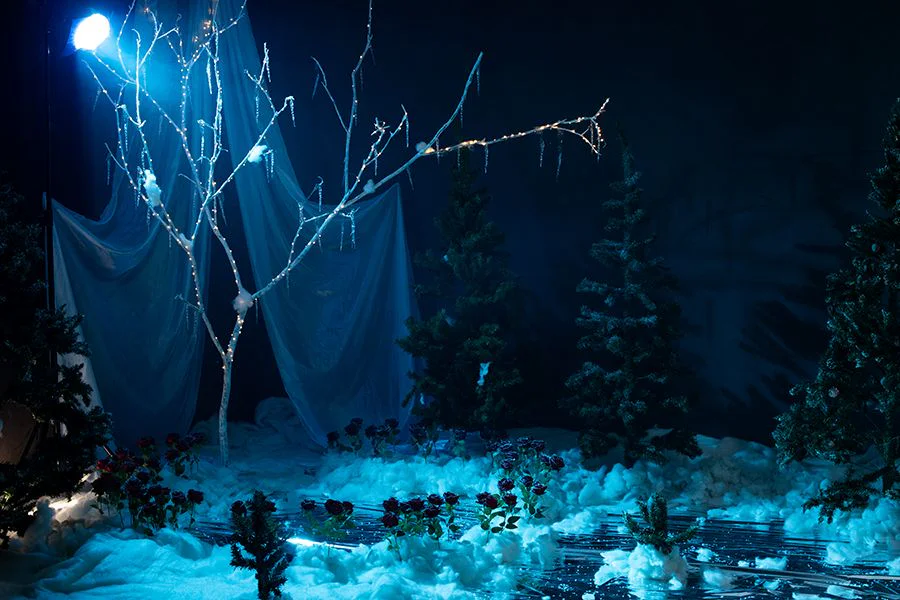 Первой совместной работой стал проект «Маскарад призраков» — готическая фотозона с авторскими масками, тканями, свечами и мистической атмосферой, собранная в стенах MUZA. Затем — «Морозная фантазия»: зимняя сказка с ледяной гладью, заснеженными елями, алыми розами и проектором с эффектом бесконечного снегопада. Эта локация стала одной из самых популярных в зимнем сезоне 2025–2026.