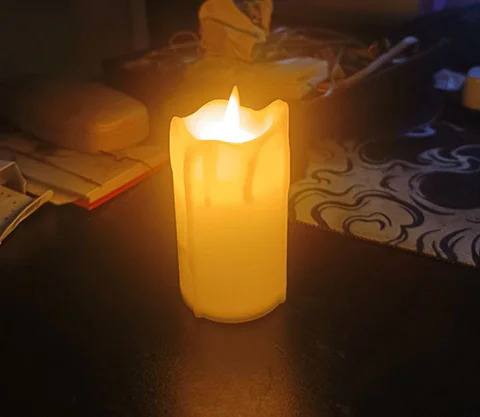 После сборки первого прототипа мы протестировали его на локации «Готика» в студии MUZA — именно там электронные свечи используются больше всего. Результат: одного заряда хватило на несколько рабочих дней непрерывного горения. Зарядка через USB-C занимает около часа. Экран показывает процент заряда — удобно контролировать, когда пора подключить кабель.